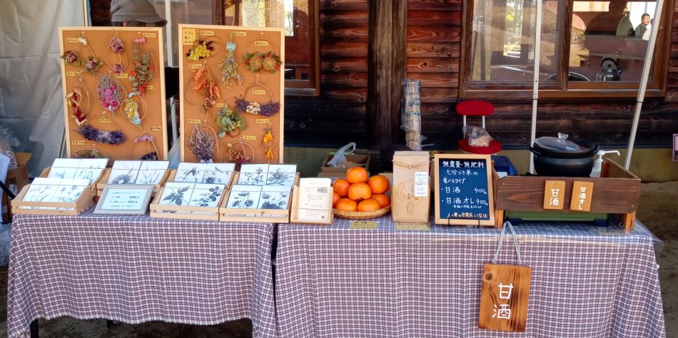 出店品目は「鉛筆画のポストカード」と「ドライフラワーのミニリース」です。